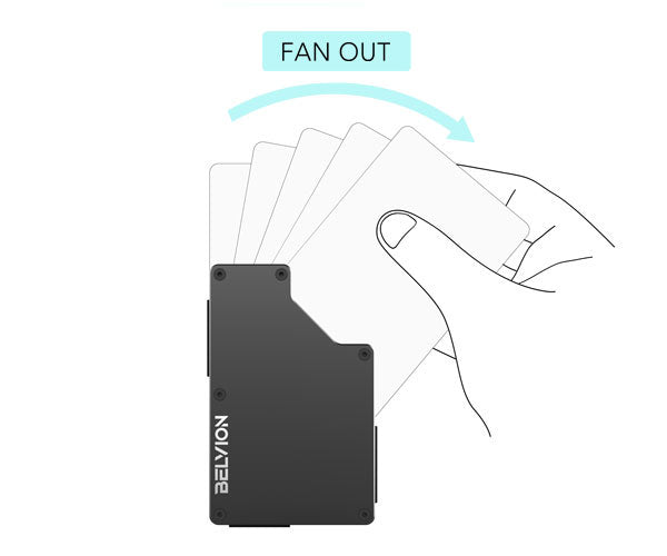 For optimal card selection, begin by partially pulling out all the cards from the wallet. Next, use your thumb to slide the front card to the side. This will create a well-spaced arrangement of cards, enabling you to easily locate and choose the required card.