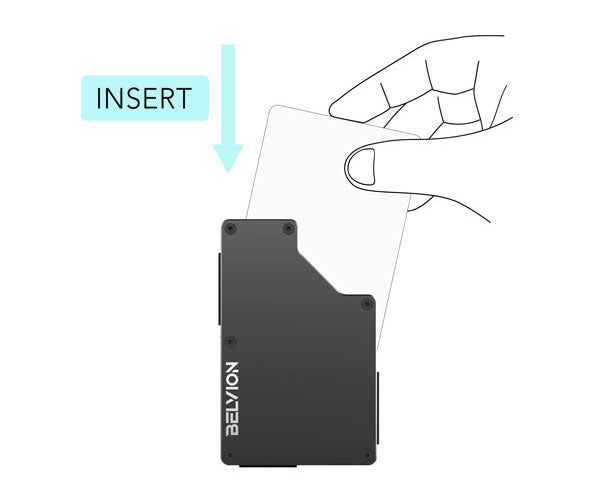 Insert your cards and money between the plates of the wallet from the TOP SIDE.