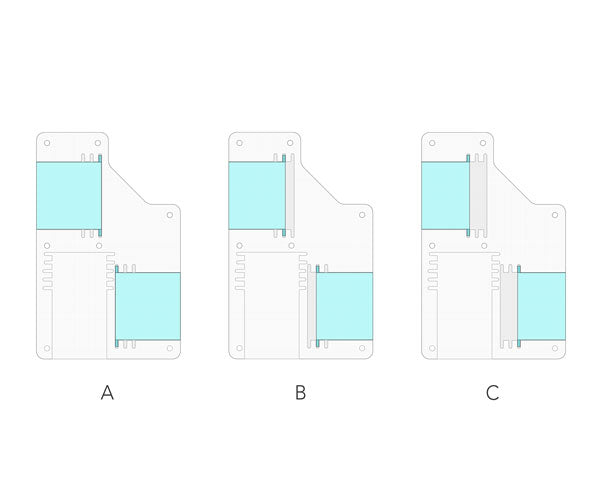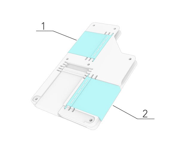 In order to customize the number of cards your Belvion wallet can hold, simply detach the front plates from both sides and adjust the positions where the elastic bands 1 and 2 are hooked. By hooking the ends elastic bands to different grooves you can loosen or tighten the grip your wallet will exert on your cards.