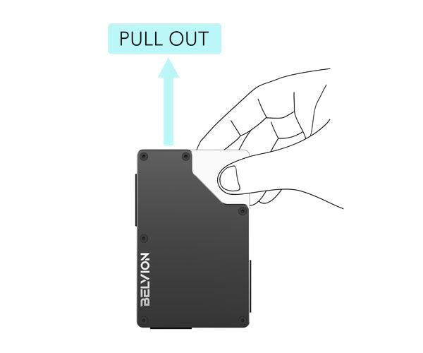 To remove the cards, gently grasp the cards located at the top right CUT-OUT of the wallet using your thumb and index finger. Pull them out smoothly and efficiently. Whether you choose to extract all the cards simultaneously or opt for removing only the front or back card, this method ensures a quick and convenient experience.